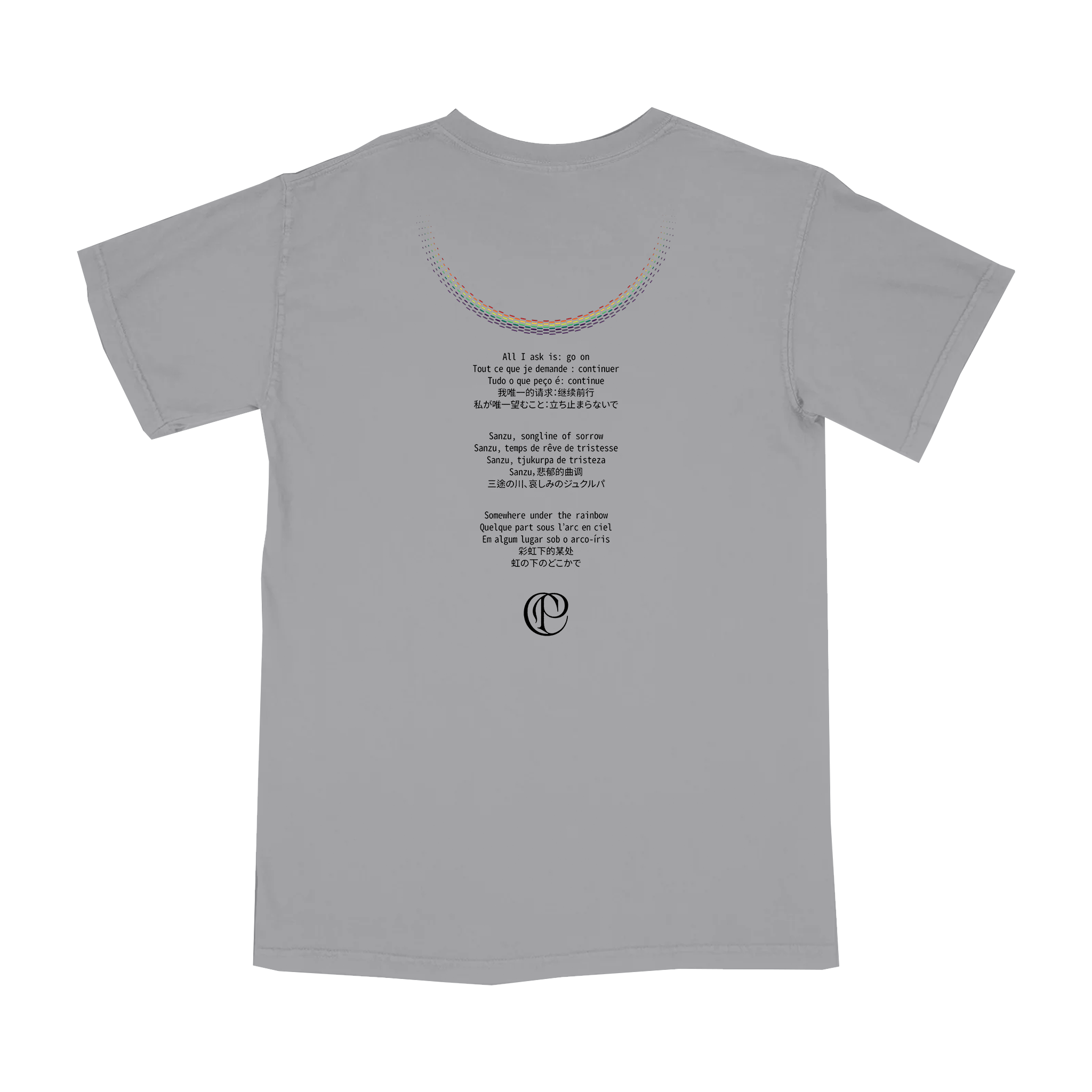 Heavyweight 6.1 oz, 100% cotton tee with screen print front and back using neon inks. Design by Timothy Luke.